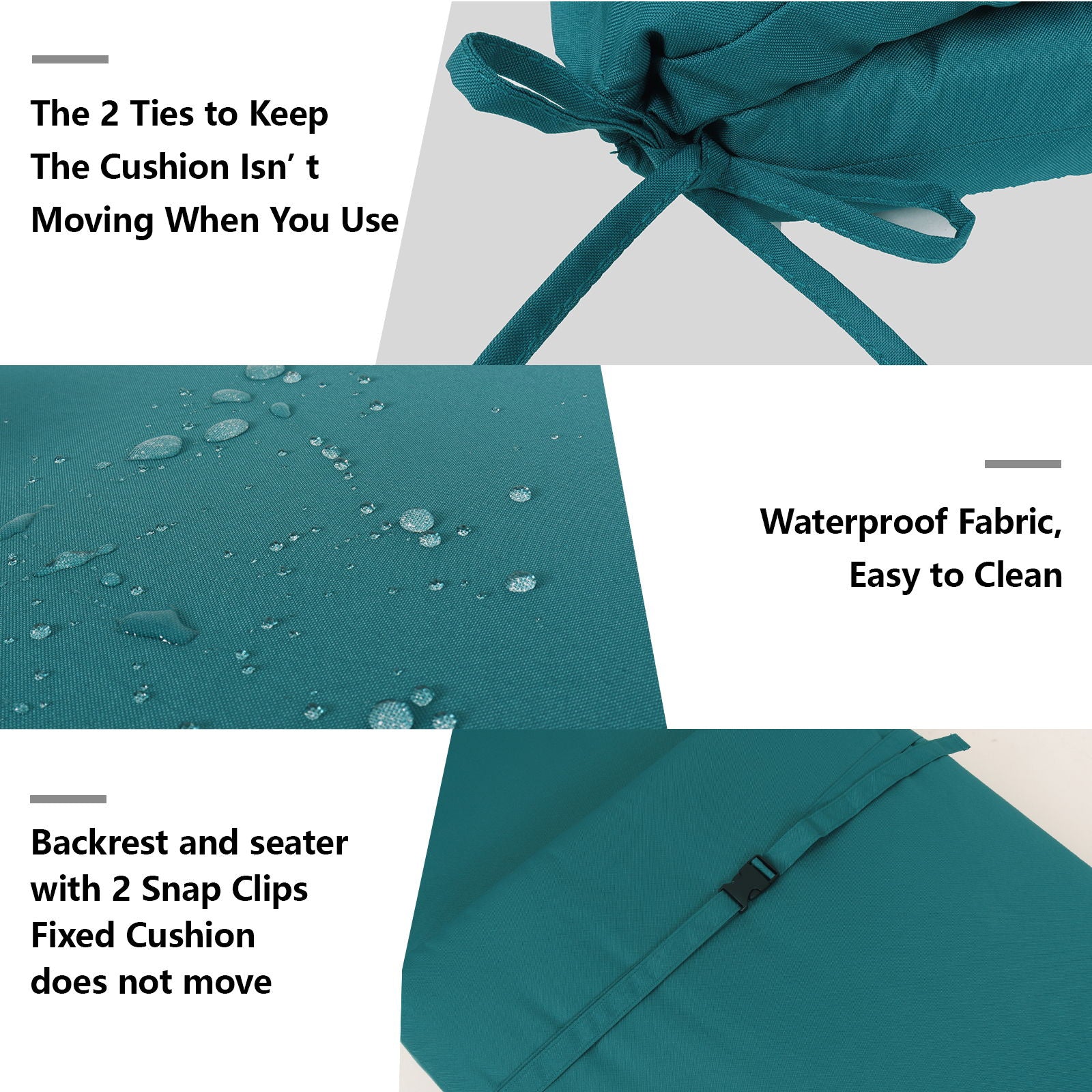 - Secure Fastening System: Includes backrest straps and seat snap clips to keep cushions firmly in place during use.