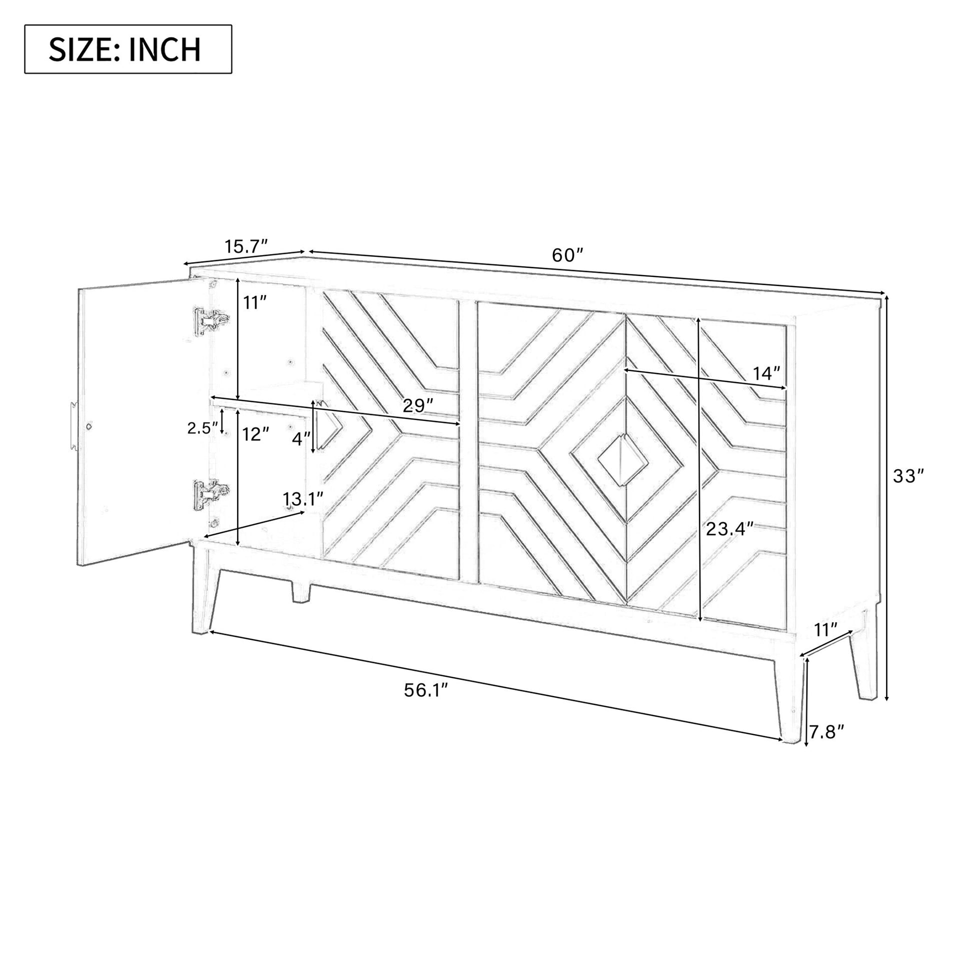 - Durable Construction: The sideboard is crafted from solid rubber wood and high-quality MDF, ensuring stability and longevity. It features smooth diamond handles and adjustable foot pads for enhanced stability.