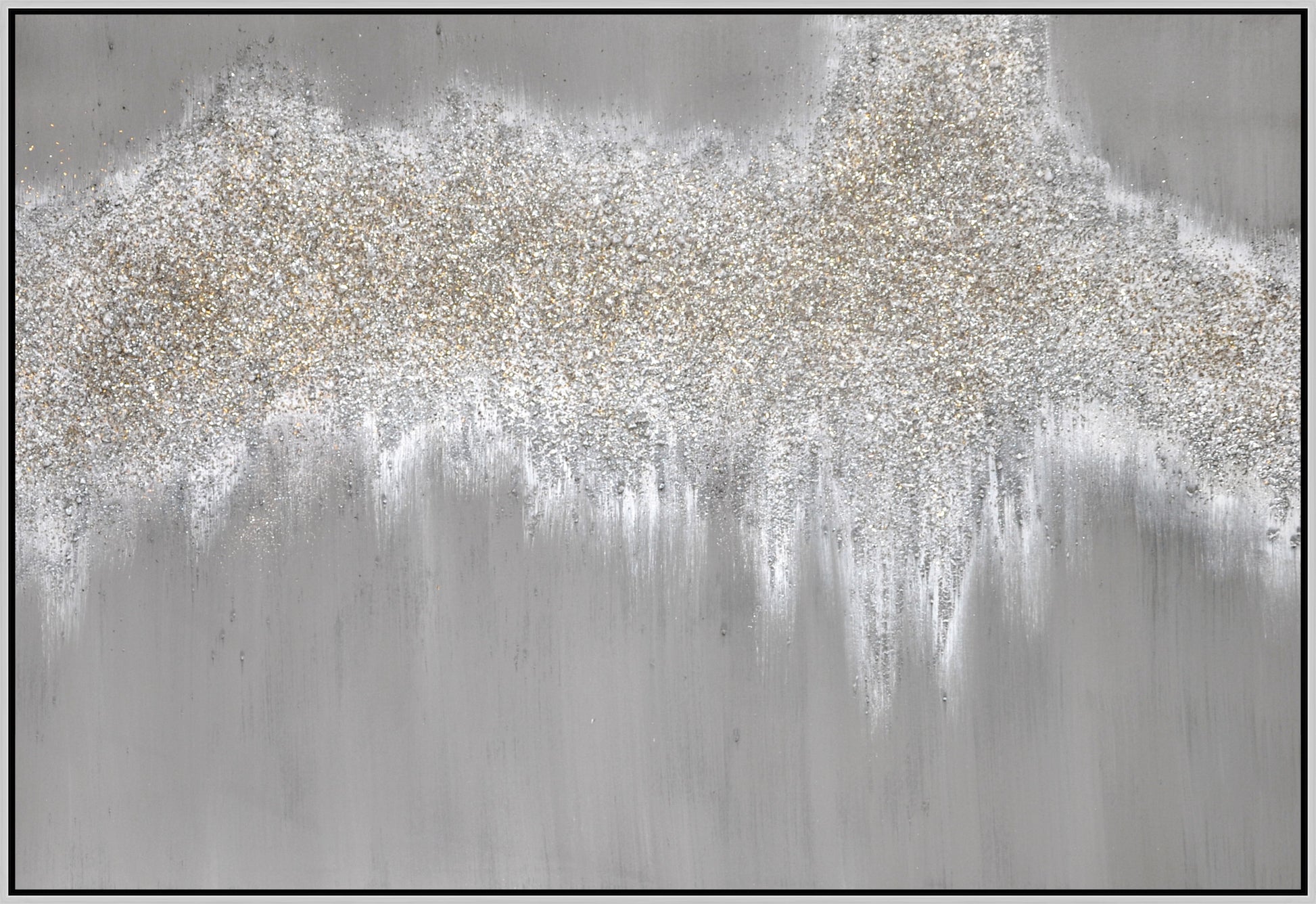 47x32 Hand Painted Textured Canvas Glitter In Frame - Gray