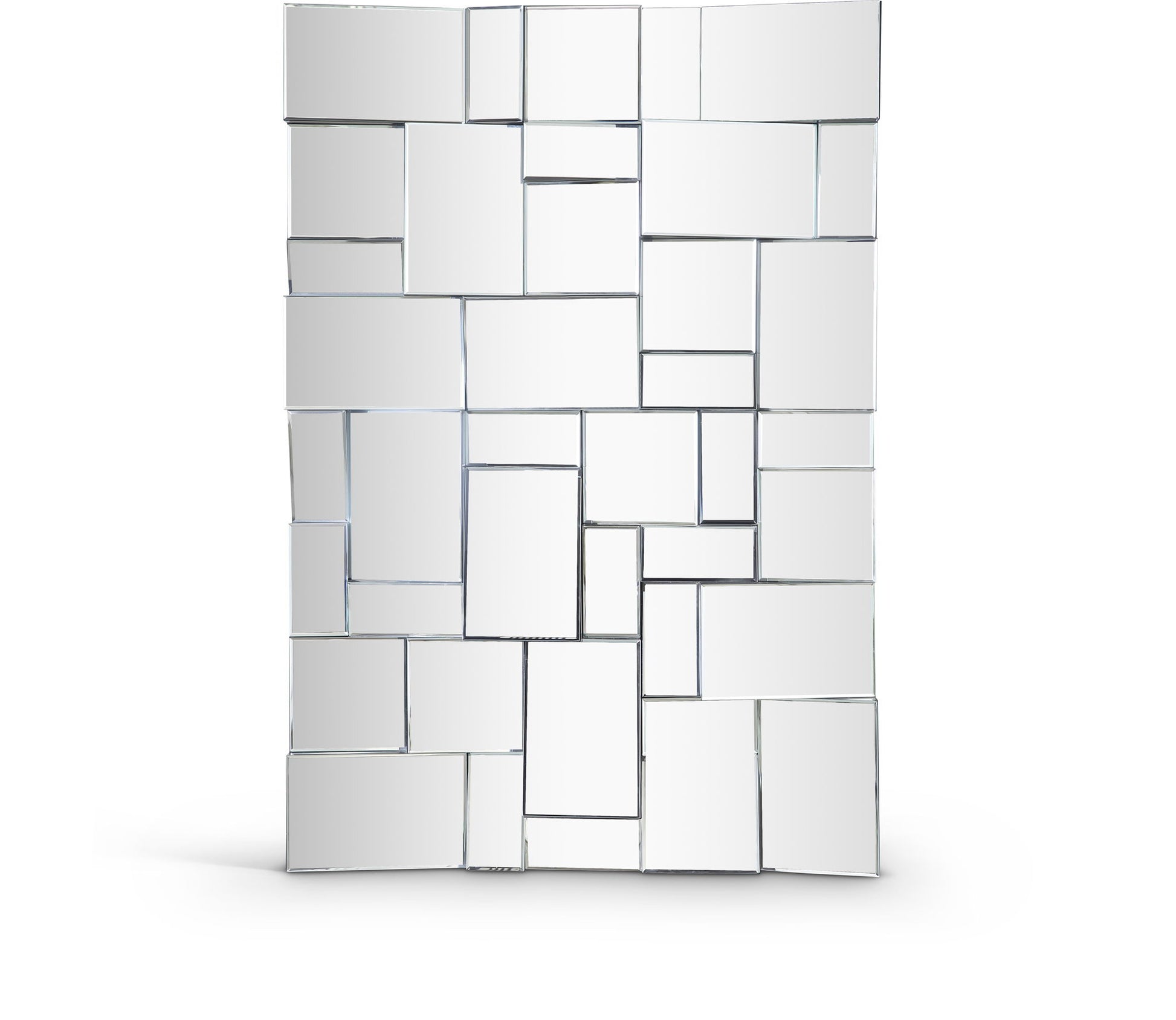 Get ready for instant drama when you hang this Action mirror from Meridian Furniture. This eye-grabbing mirror offers an oversized design that makes an instant visual impact on your wall, no matter where you hang itfrom the foyer to the living room, bedroom, and beyond. Display this contemporary mirror anywhere you want to bring more excitement with its staggered geometric shapes and fun design.