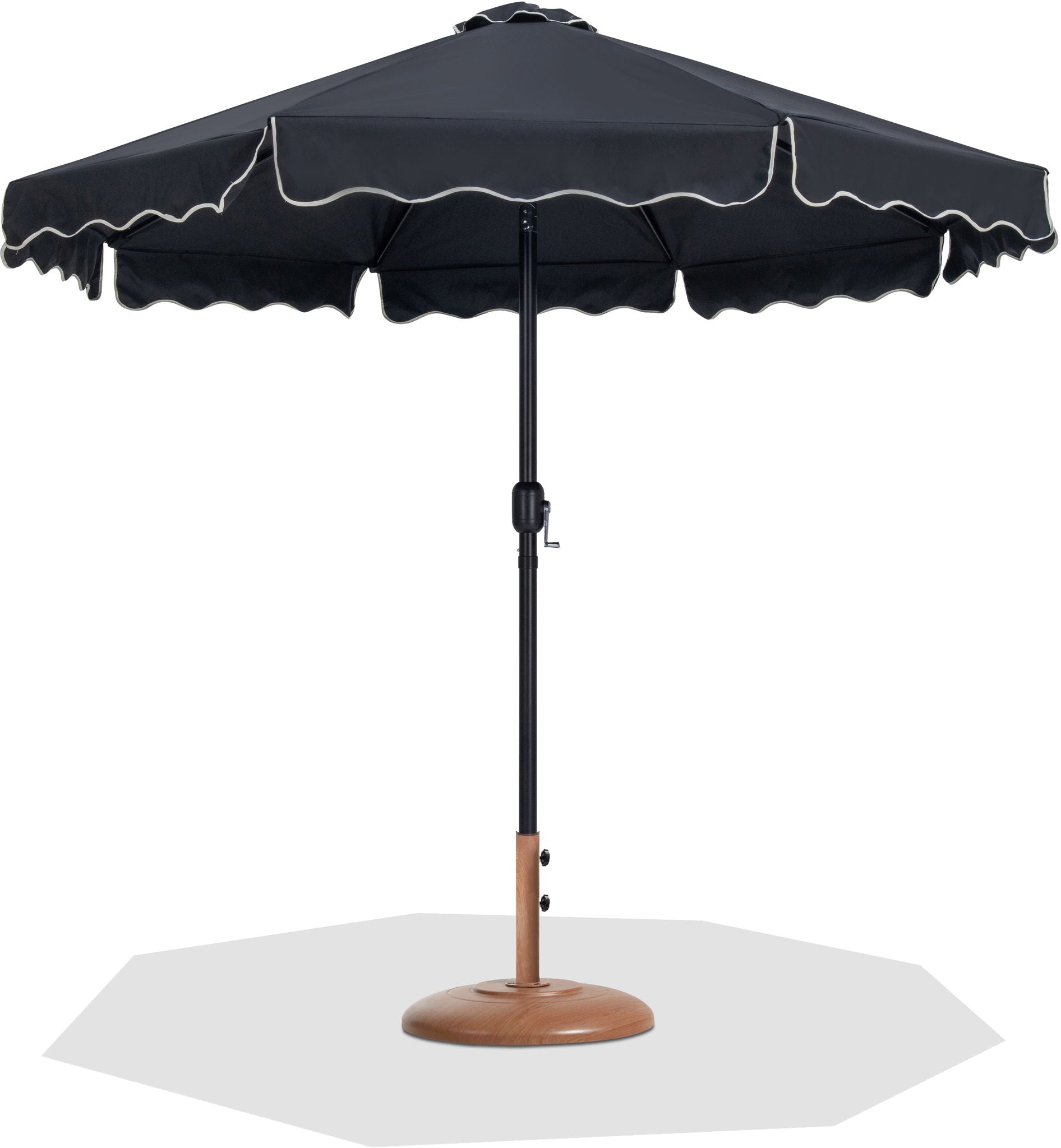 Amalfi - With Cream Piping Aluminum Patio Umbrella With Teak Base / Black Pole - Black