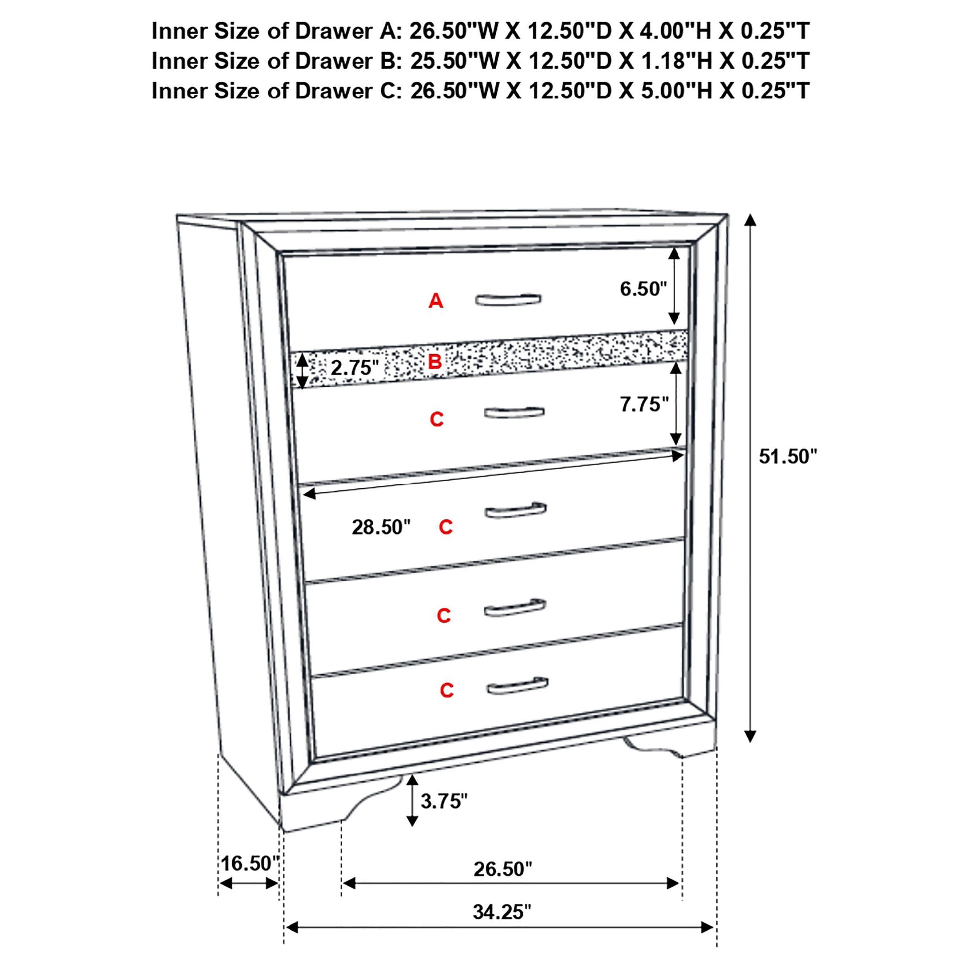 34.25"W x 16.5"D x 51.5"H - 145.53 lb