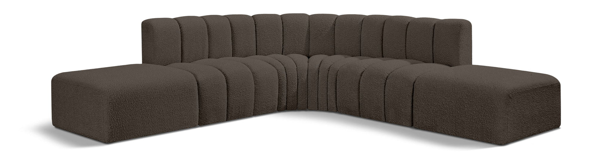 Arc - Boucle Fabric 6 Piece Corner Modular Sofa - Brown