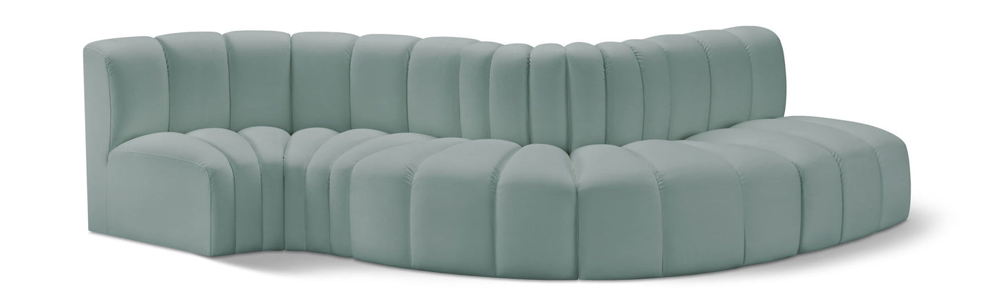 Arc - Faux Leather 5 Piece Modular Sofa - Mint Green