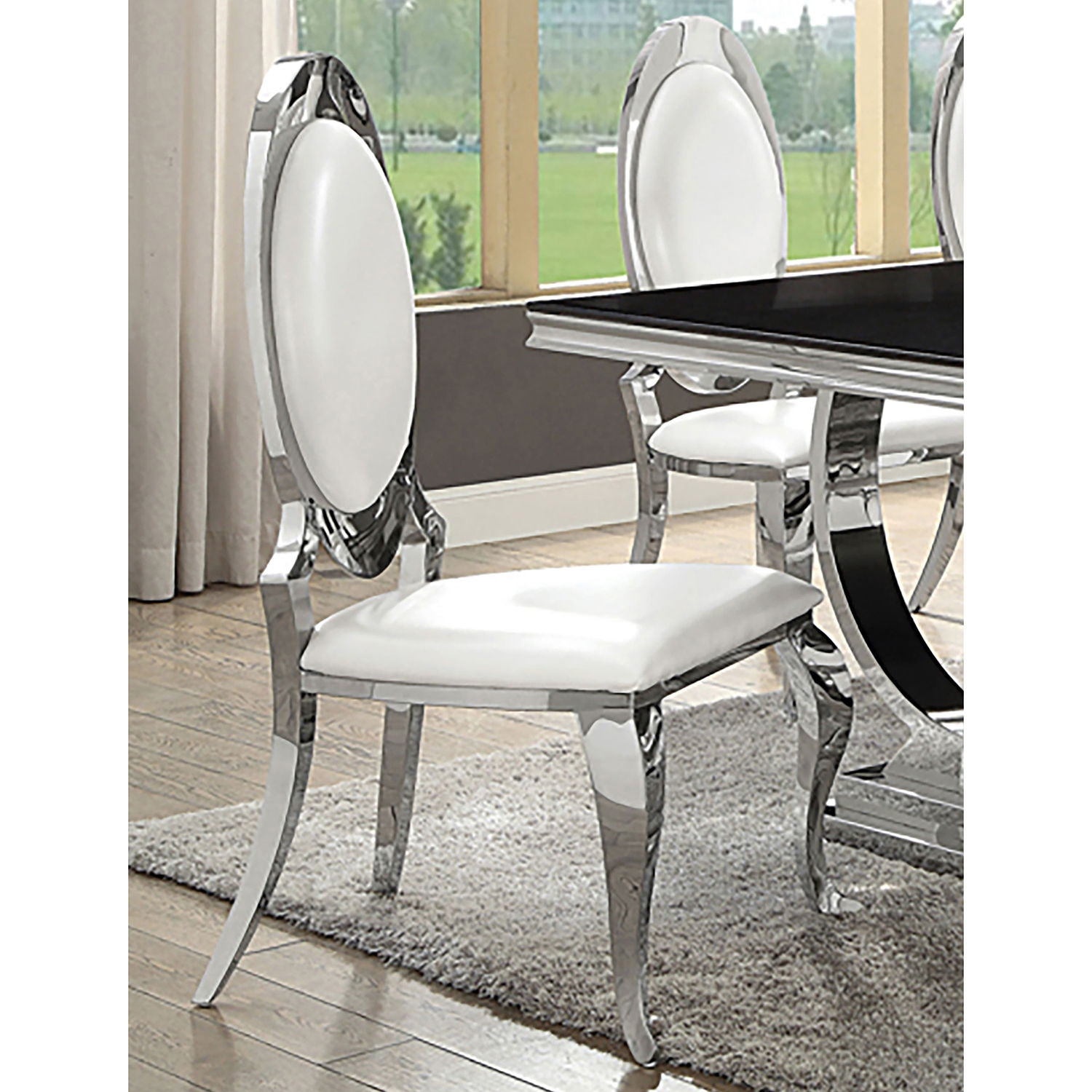 - High-shine chrome stainless steel frame: durable and visually striking with a reflective finish