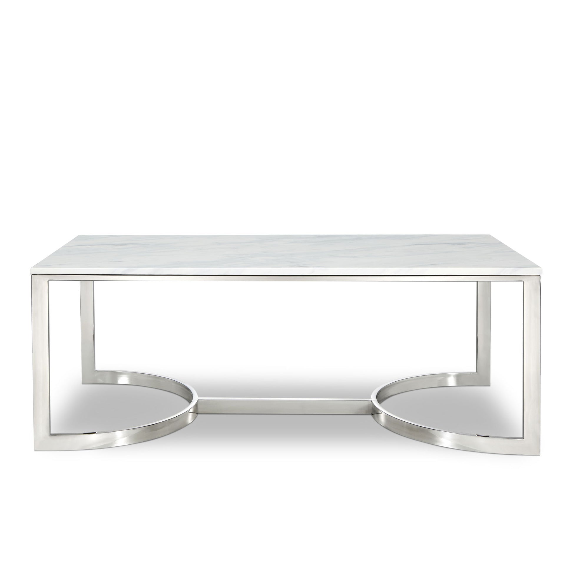 Lend your living room or den a modern slant with the Copley coffee table from Meridian Furniture. This coffee table features geometric bases, and a sleek chrome finish that gives your space a bold, up-to-the-minute look. Each table has a solid stone top for durability and style.