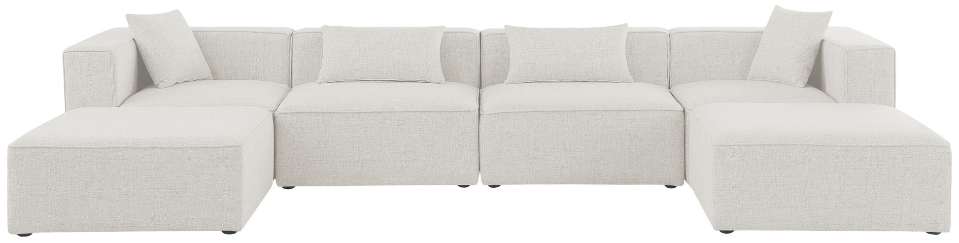 Cube - Linen 6 Piece Modular Double Chaise Sectional - Cream