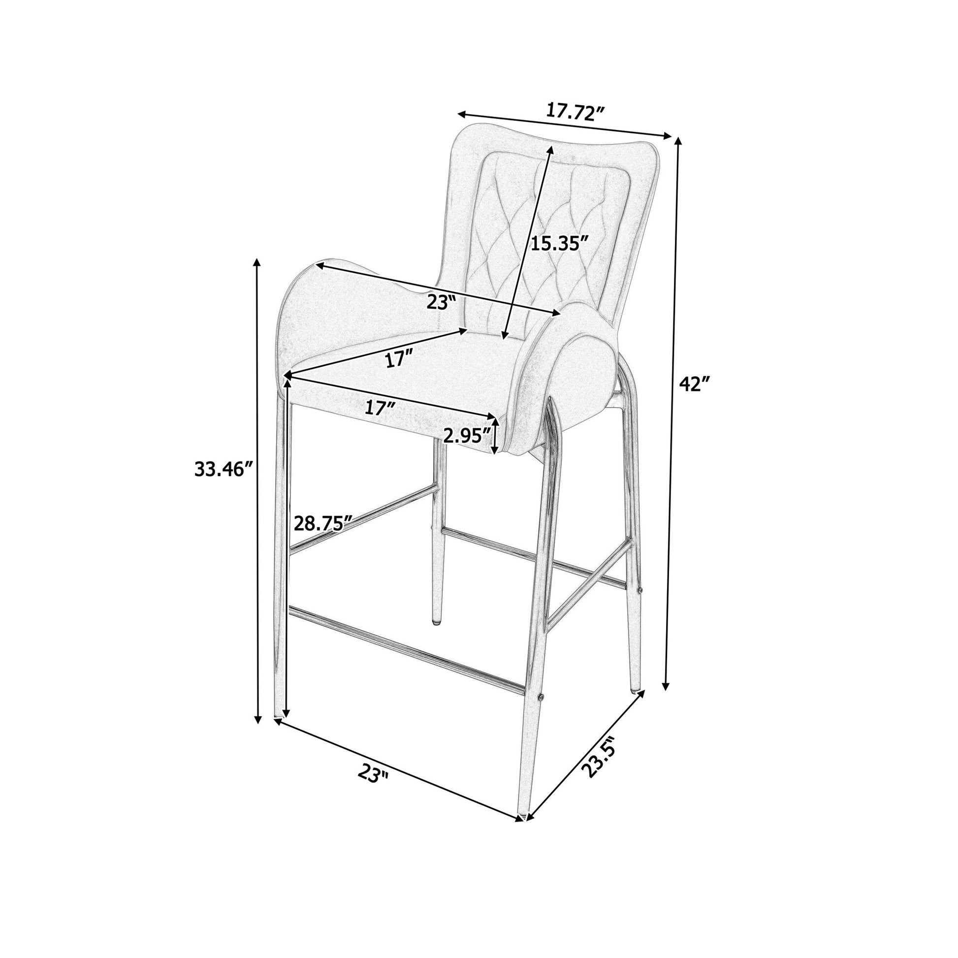 Velvet Fabric Counter Height Bar Stools (Set of 2) With Legs And Footrests, 28.75" - Gray