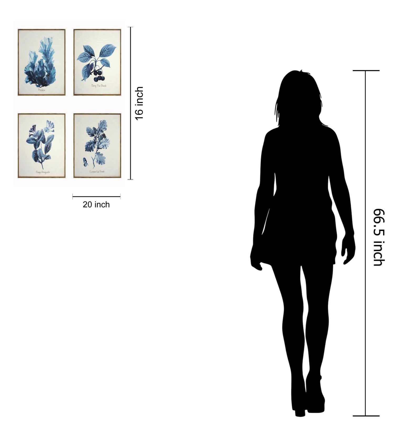 Hand Painted Textured Canvas With Foil in Frame (Set of 4) - Blue