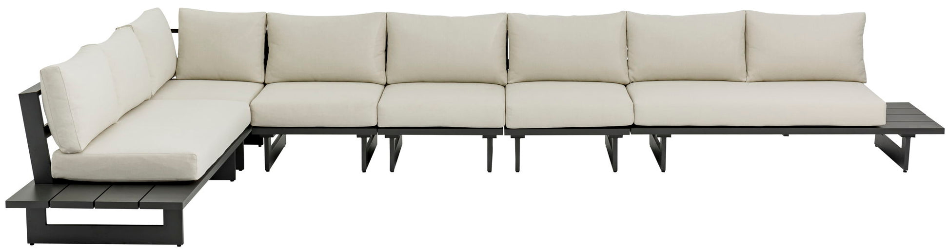 Maldives - 6 Piece Water Resistant Outdoor Patio Modular Left Arm Facing Sectional With Gray Base - Cream