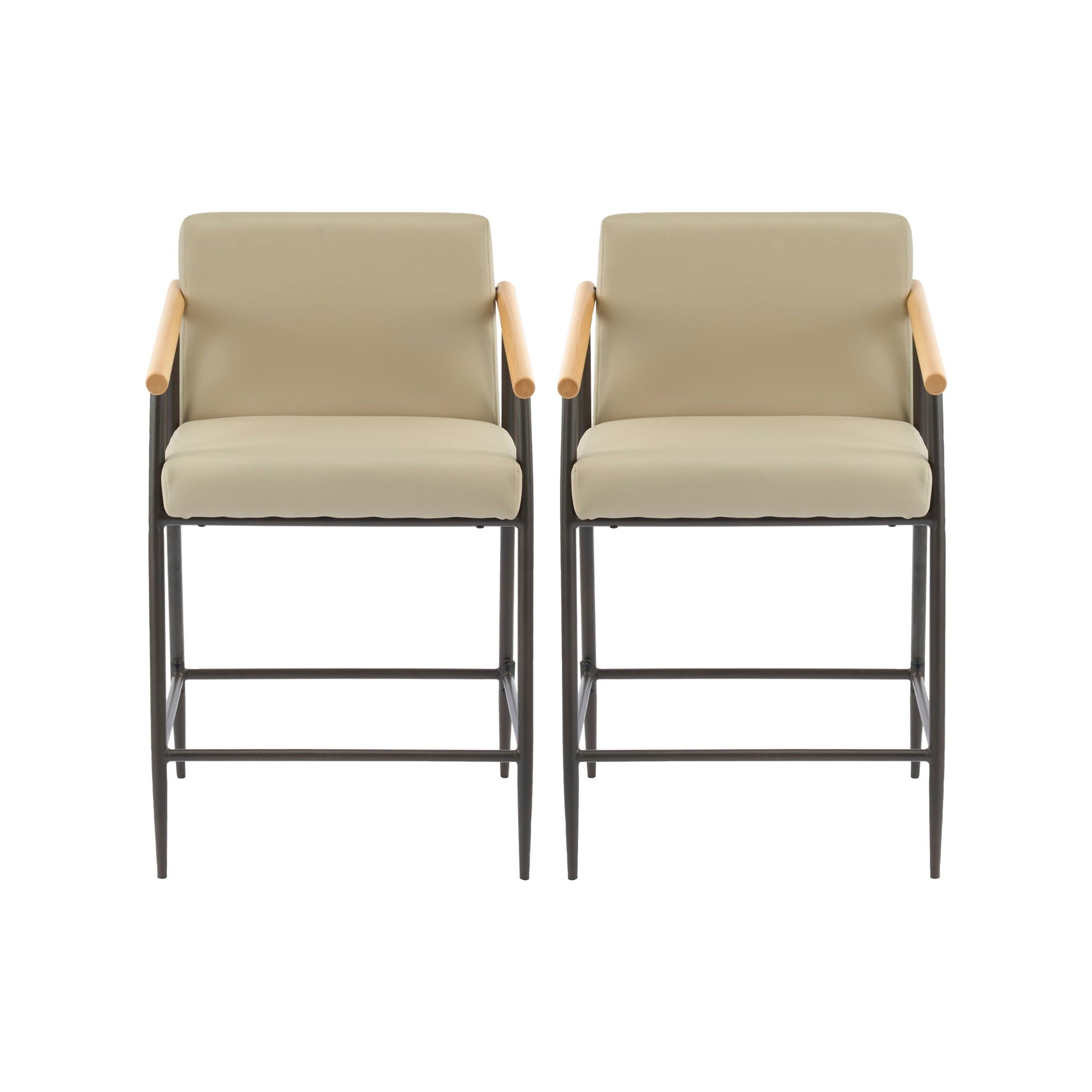 Mid Century Modern Counter Stool Set With Espresso Metal Frame - Khaki