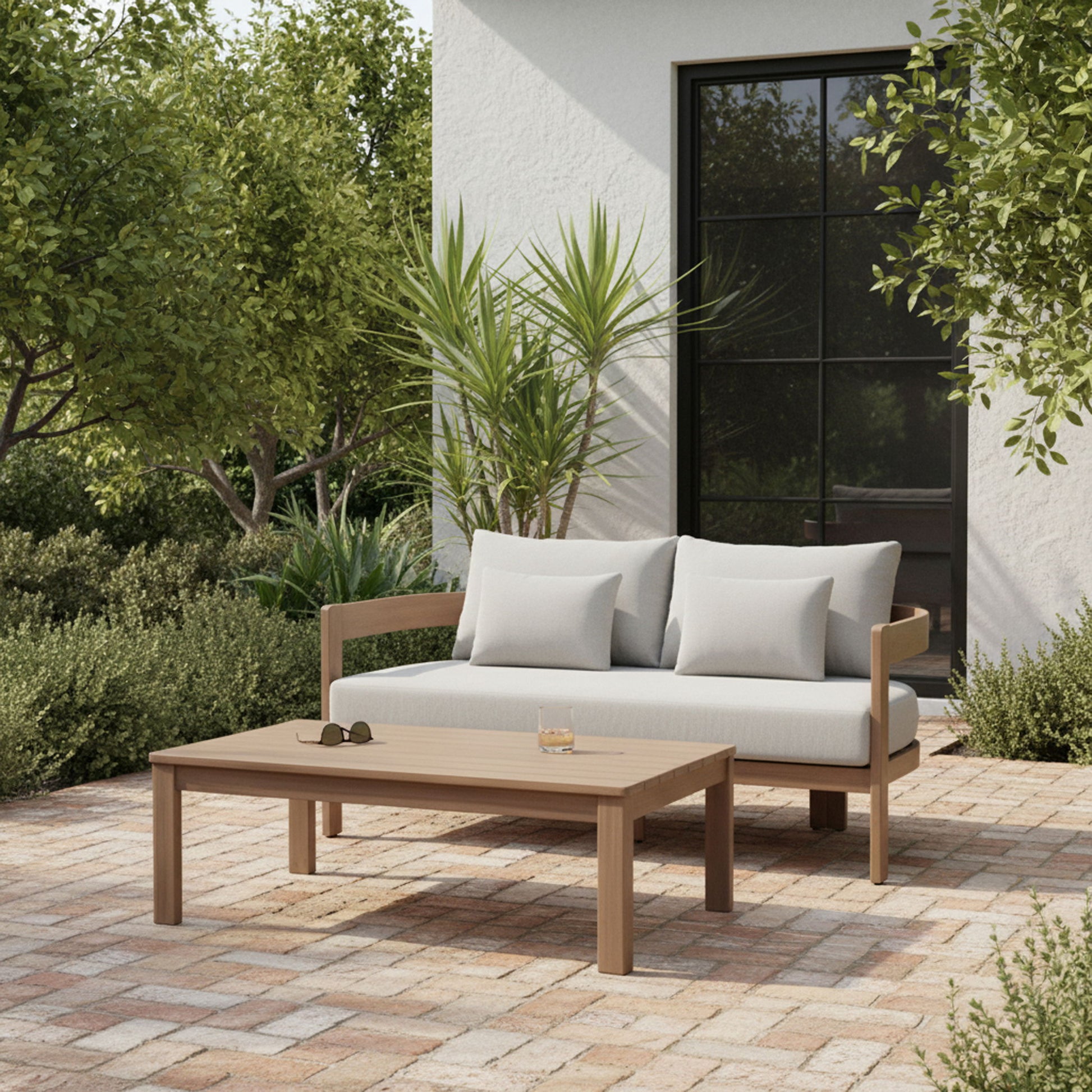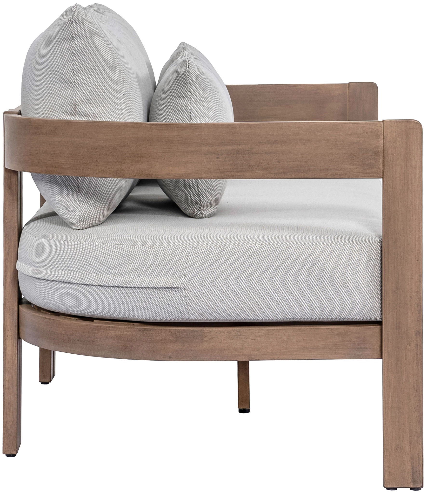 Water-resistant fabric and a natural acacia wood frame make the Newport patio loveseat a standout for any outdoor setting. Built with quick-drying foam and thermowood treatment, it's designed to handle the elements without compromising style. Perfect for lounging, this contemporary piece blends casual comfort with sleek sophistication.