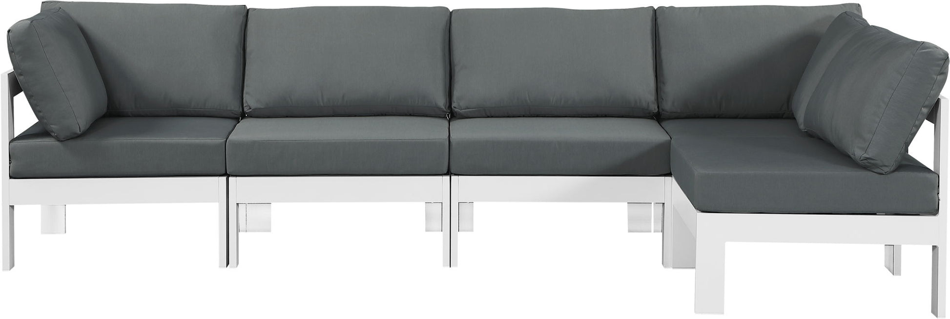 Nizuc - Outdoor Patio 5 Piece Modular Corner Armless Sectional With White Frame - Gray