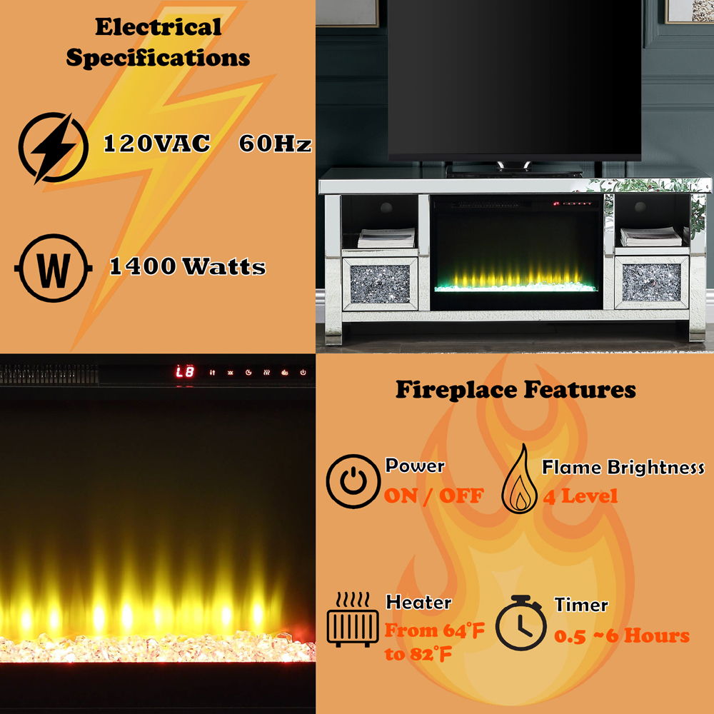 - Materials: Fireplace, Composite Wood, Mirror, Acrylic Diamond