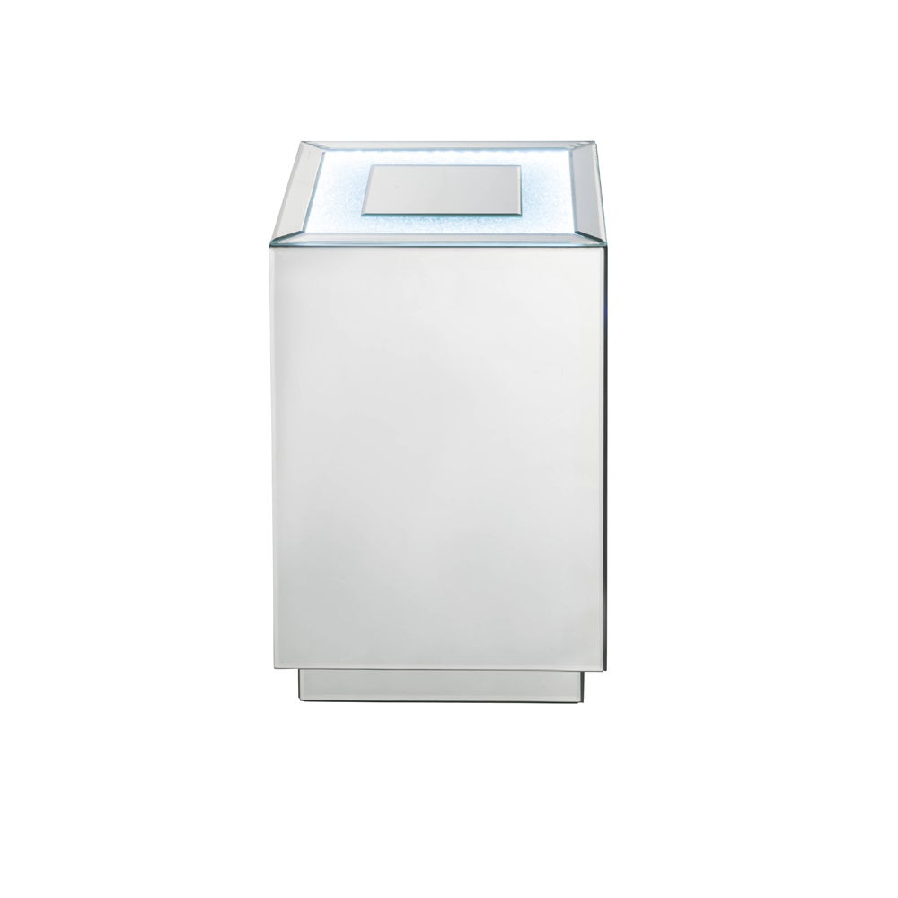Style abound in the ample and functional design of the Nyoka side table. At night, you can turn on and off the LED Function. A glam display table that naturally attracts the eye with its beveled mirrored finish.