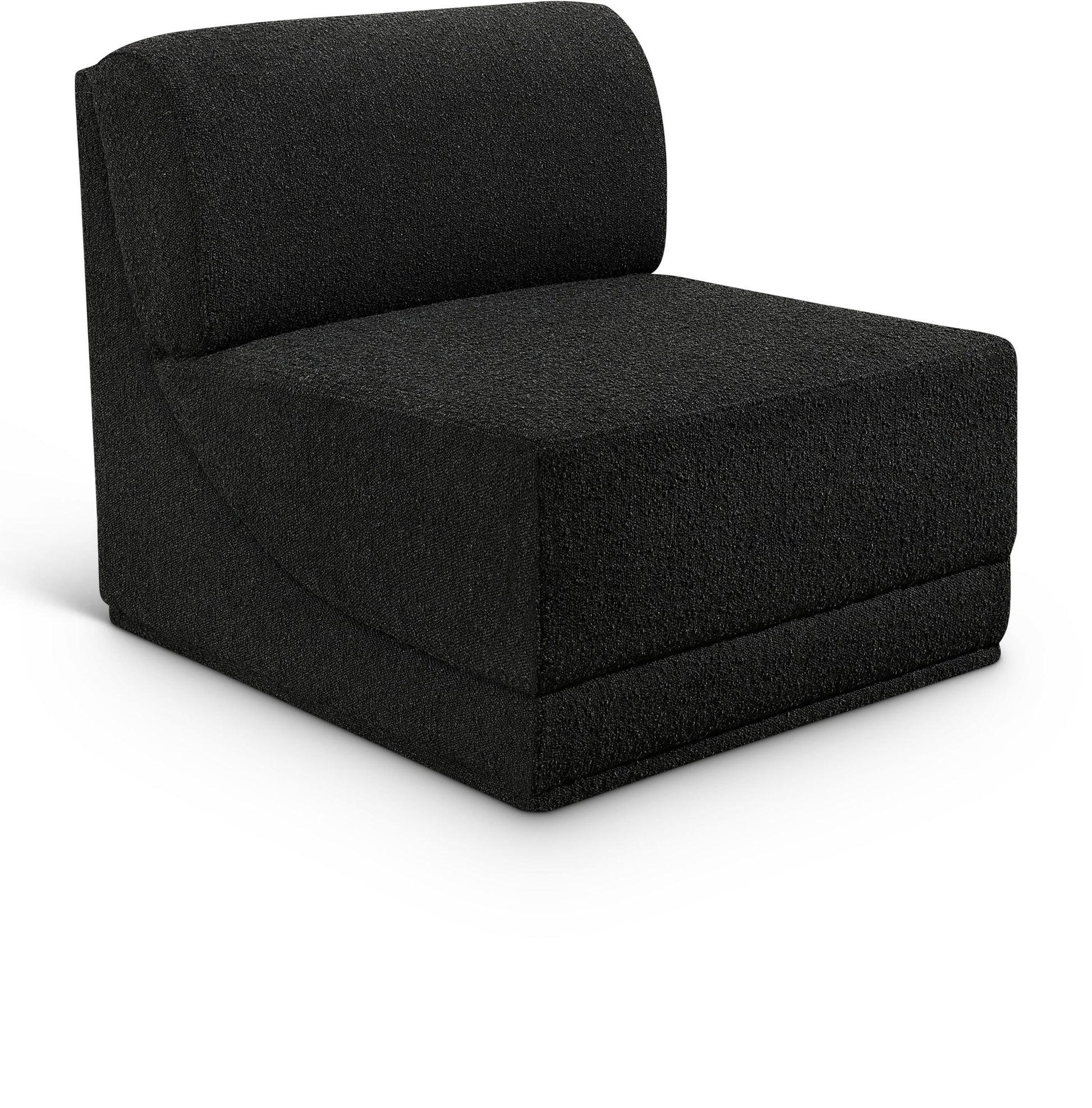 Meet the epitome of style and functionality with this Ollie boucle fabric living room chair, part of the Ollie modular collection. A contemporary marvel, this chair features chic and inviting rich boucle fabric upholstery, giving it a sumptuous texture that oozes elegance and luxury. Curved corners add to the visual look of the chair while maximizing seating comfort while lounging, reading, or entertaining. Pair it with other items in the Ollie collection easily, thanks to an attachment latch underneath.