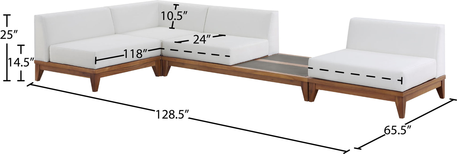 128.5"W x 65.5"D x 25.0"H - 480.0 lb