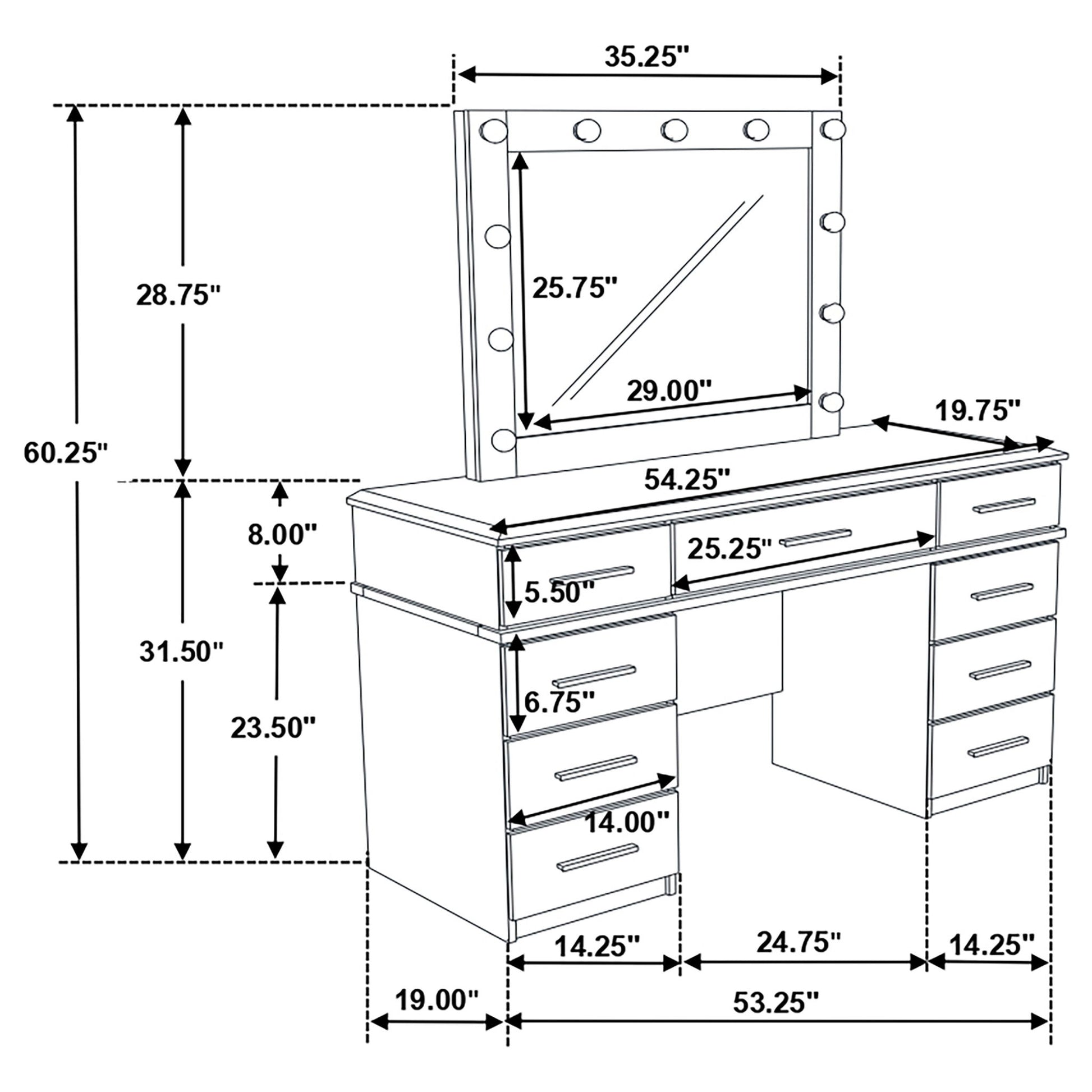 Sarah - 9 Drawer Vanity Desk With Mirror Set - White