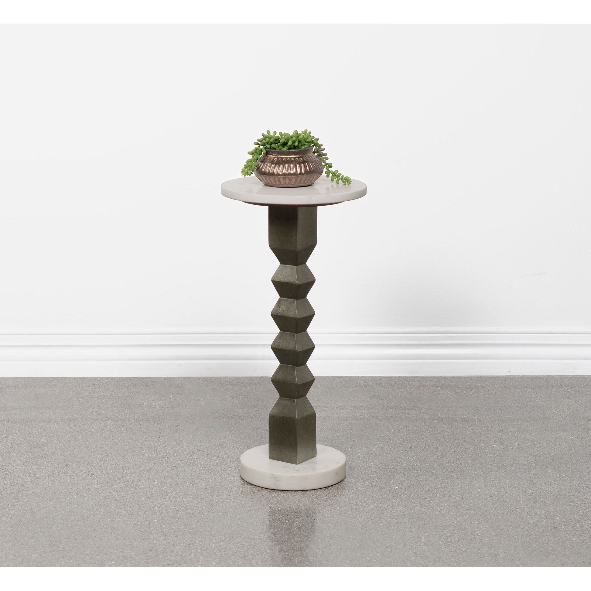 - Timeless Design: Dark gray mango wood pedestal with white marble top delivers sophisticated style