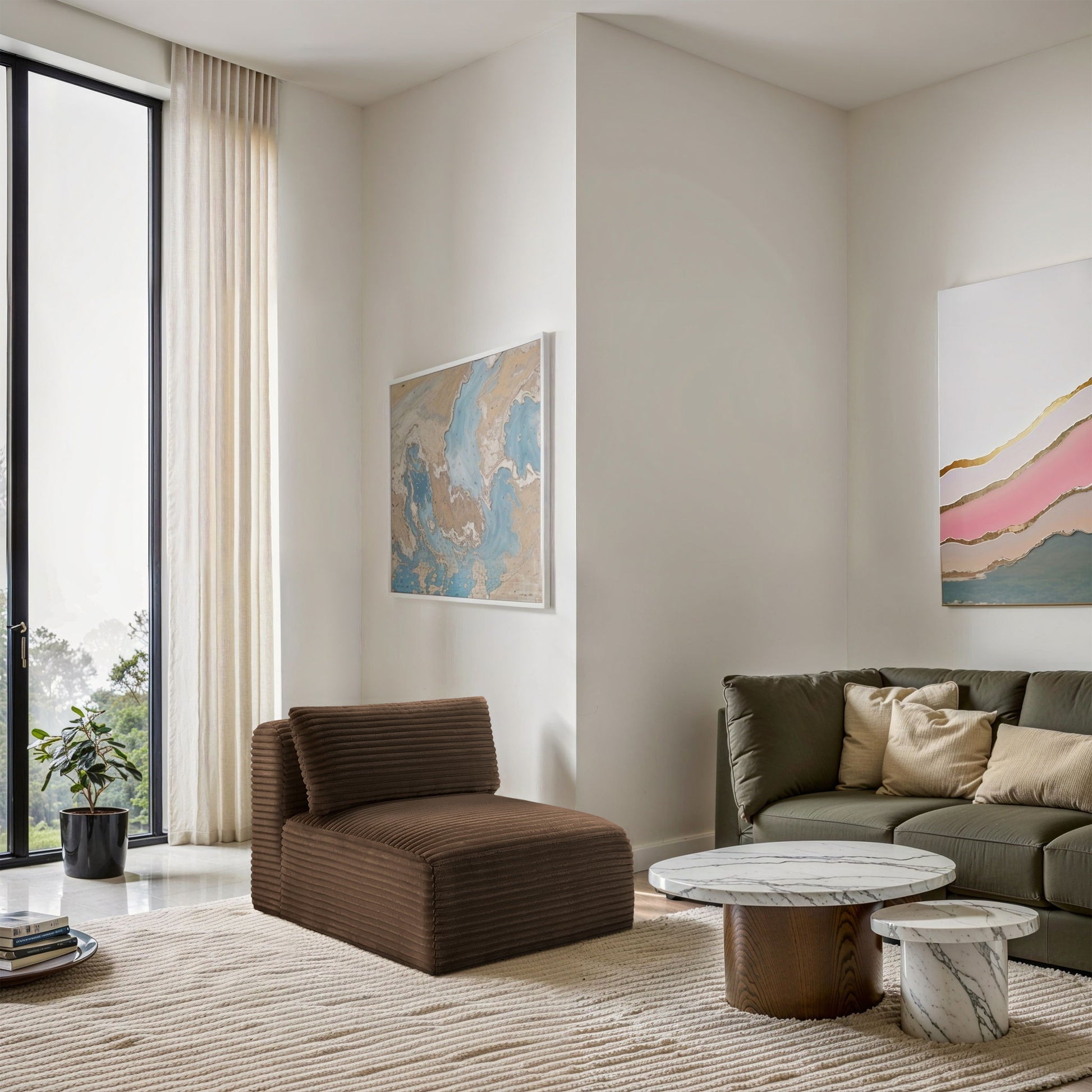 Shaggy Corduroy Performance Fabric Armless Chair