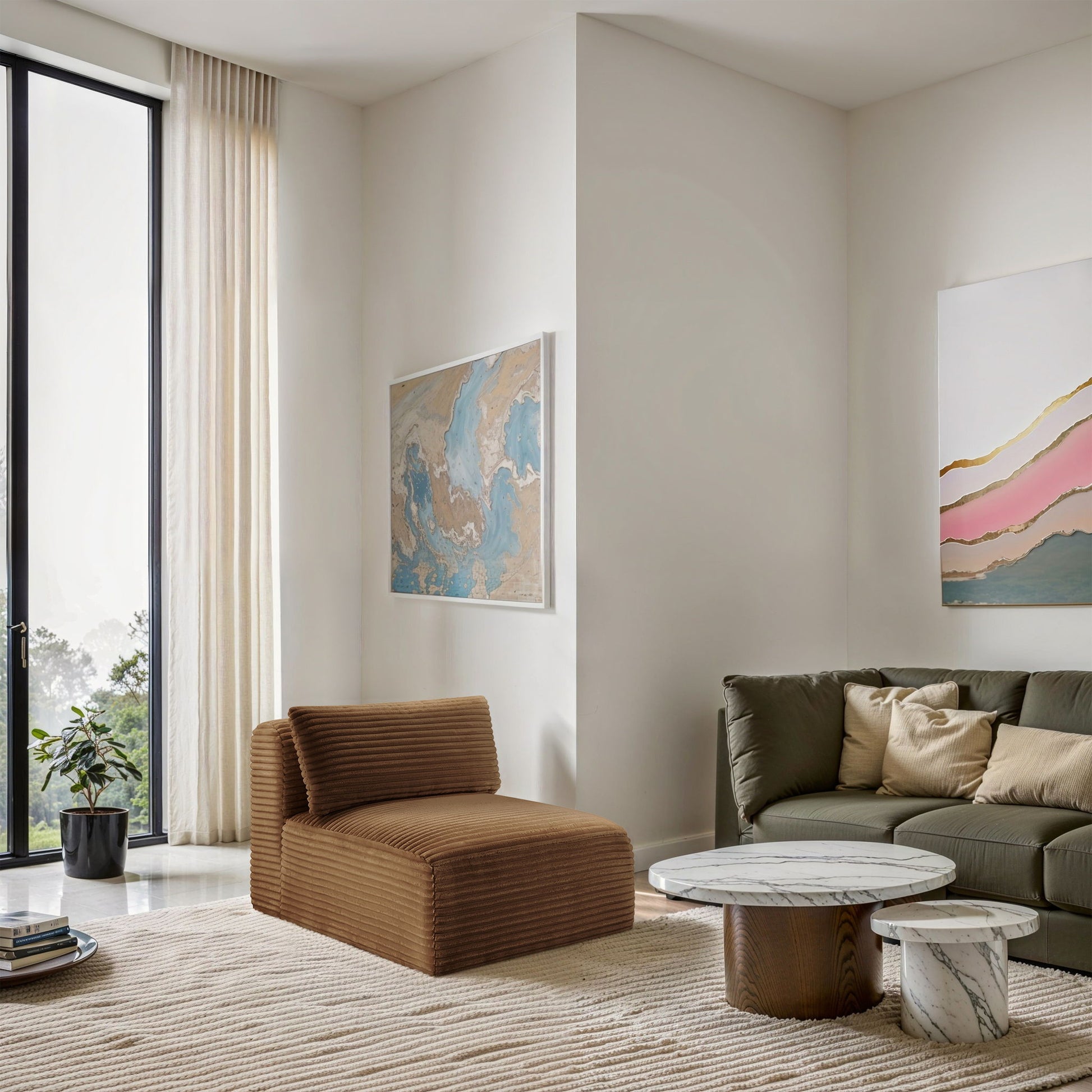 Shaggy Corduroy Performance Fabric Armless Chair