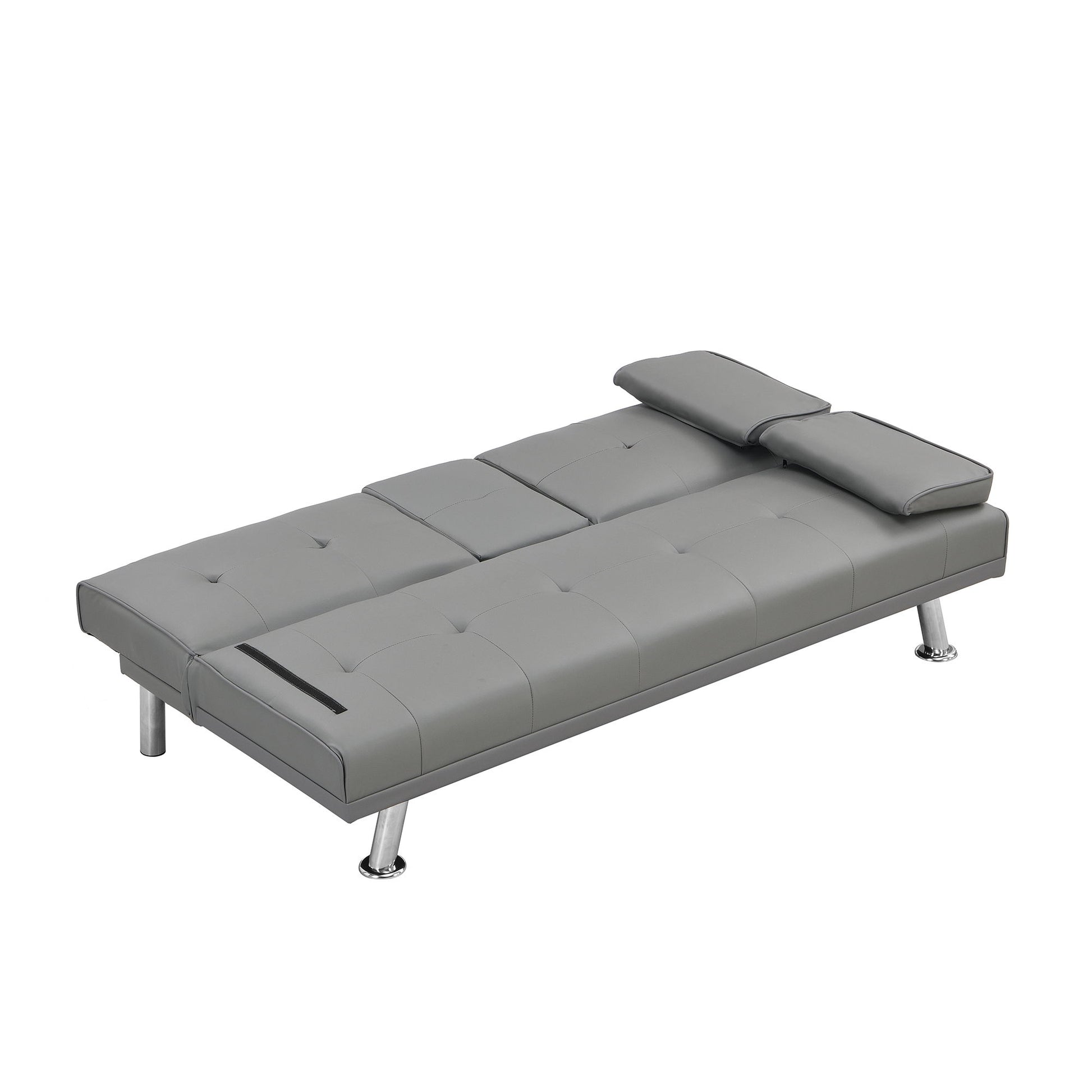 Sofa Bed With Armrest Two Holders Wood Frame, Stainless Leg Futon - Gray