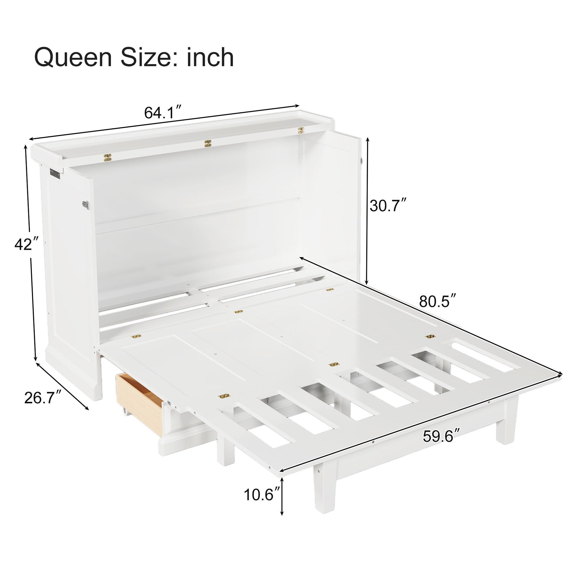Queen Solid Pine Murphy Bed Chest Cube Cabinet Bed With Charging Station And Large Storage Drawer For Home Office Or Small Room - White