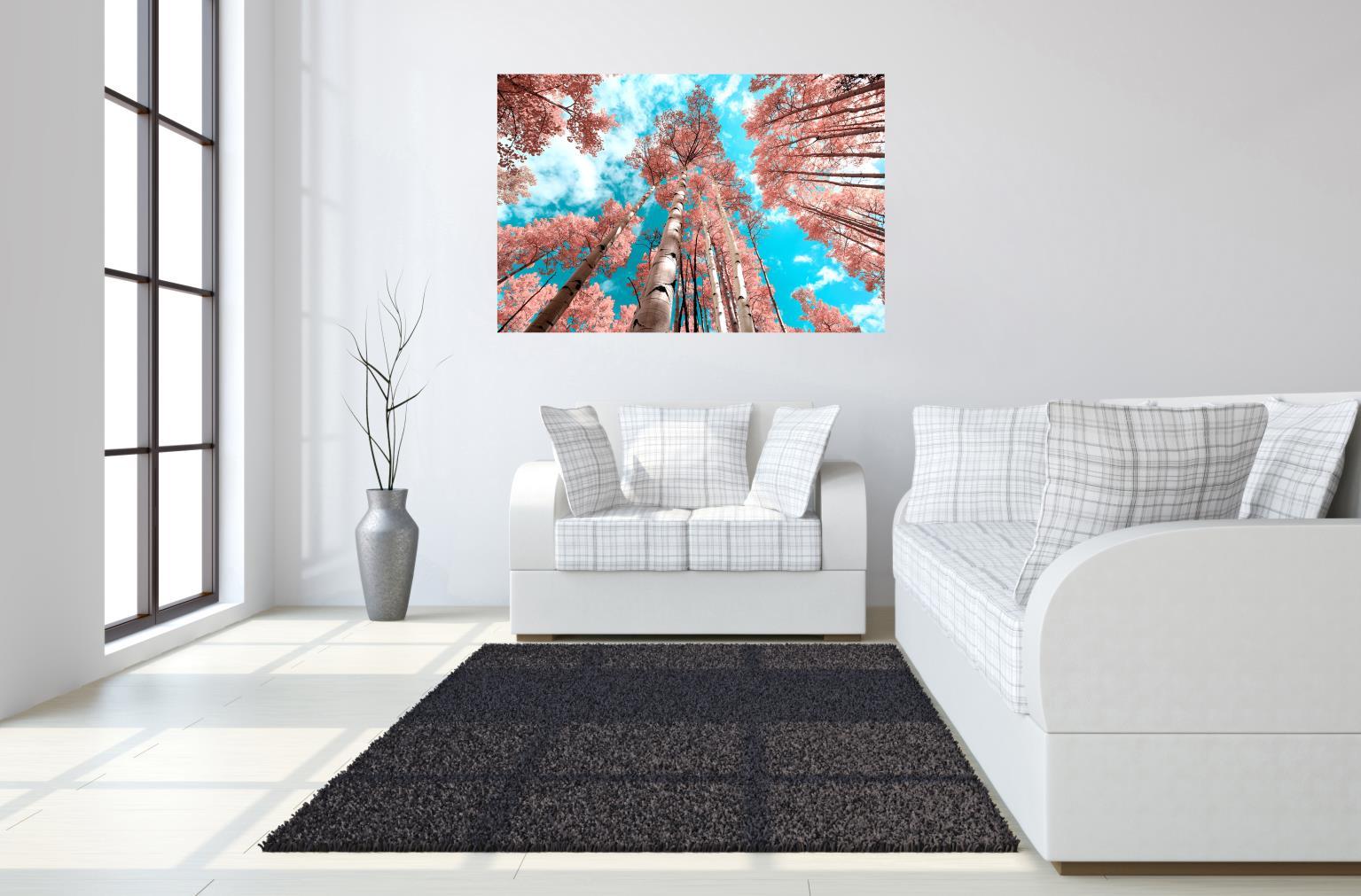 A clear sky, beautiful leaves and tall trees, sounds like the recipe for a beautiful view. Tempered or toughened glass is a type of safety glass processed by controlled thermal or chemical treatments to increase its strength compared with normal glass. The high-resolution artwork behind hit, coupled with elements of foil will mezmerize your guests. It is incredibly vibrant and alone will add a dramatic affect to your room. We overbox these large 40x60 pieces of art so it will arrive saftely to your home or office. We also have added special hanging hardware, exclusive to Classy Art, to the back to make haning this pice quick and easy.