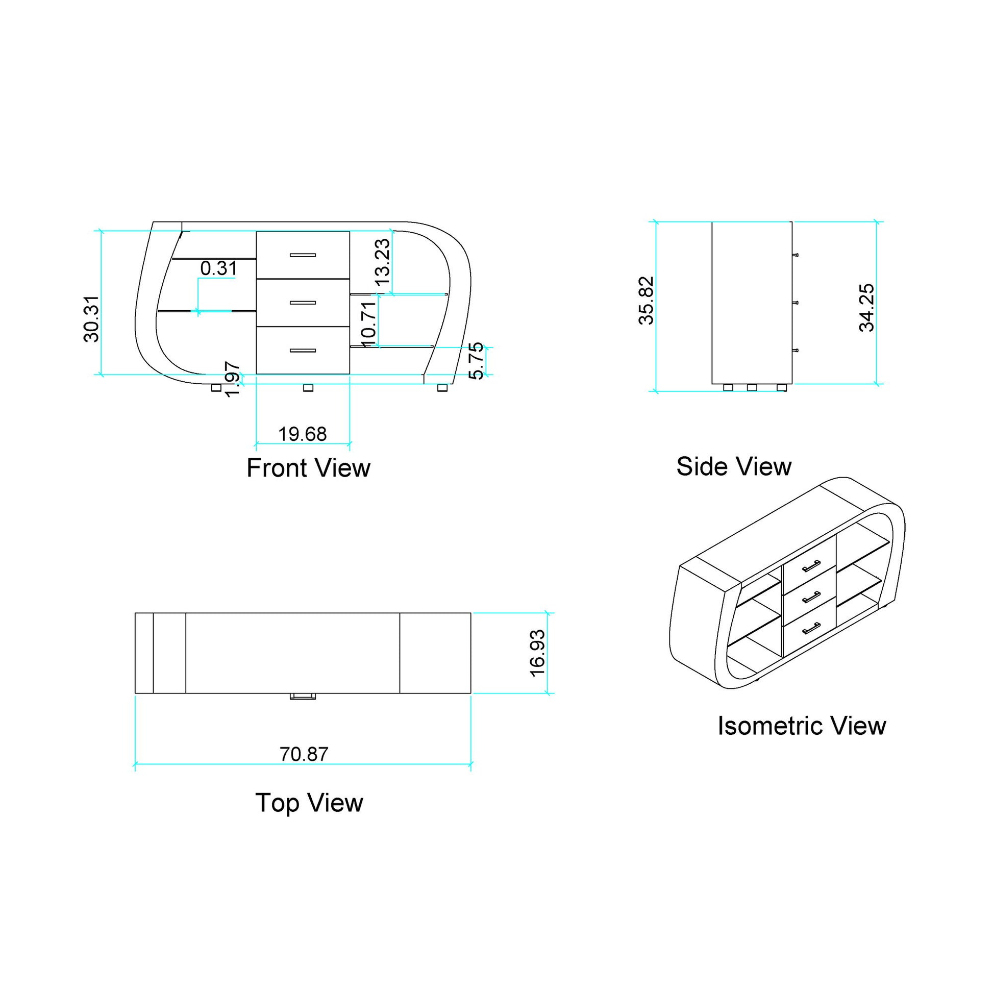 71.0"W x 17.0"D x 36.0"H - 190.0 lb